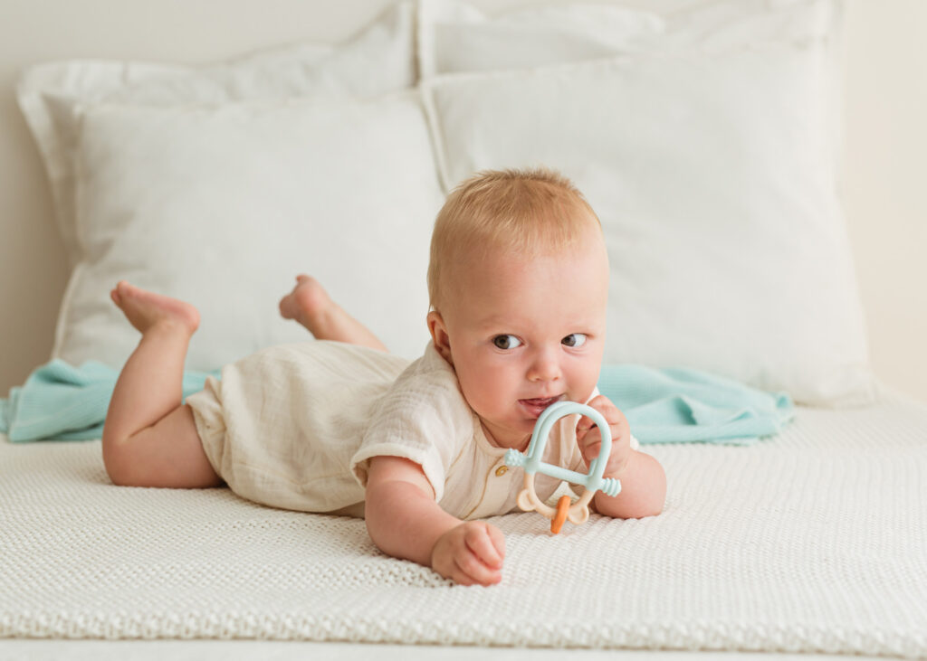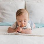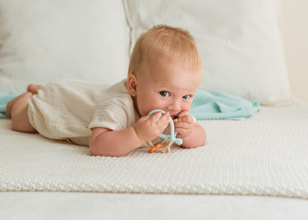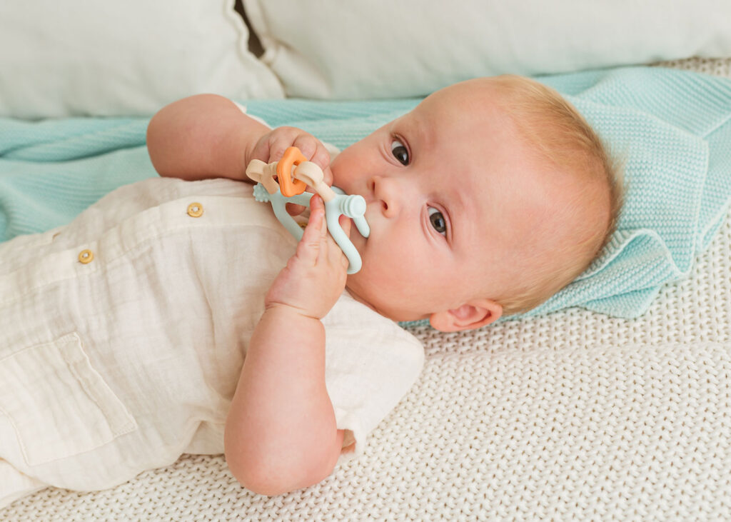 Z pastelowym misiem ząbkowanie to żadne wyzwanie! Gryzaczek posiada wypustki, które podczas gryzienia będą delikatnie masować obolałe dziąsła malucha. Kształt gryzaczka został zaprojektowany z myślą o najmłodszych. Znajdziemy tu miejsce na rączkę dzidziusia oraz poprzeczny element, za który bobas może chwytać zabawkę. Gryzak wykonany został z silikonu, dzięki czemu bez trudu go wyczyścisz.